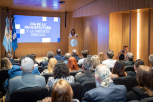 Primeramente, había dado su discurso la presidenta aludiendo a la trascendental función de administrar justicia con independencia, destacando la figura de quienes ejercieron durante años y hoy son reconocidos por nuestra entidad, además de poner en valor la ejecución del tan esperado auditorio de nuestra sede social.